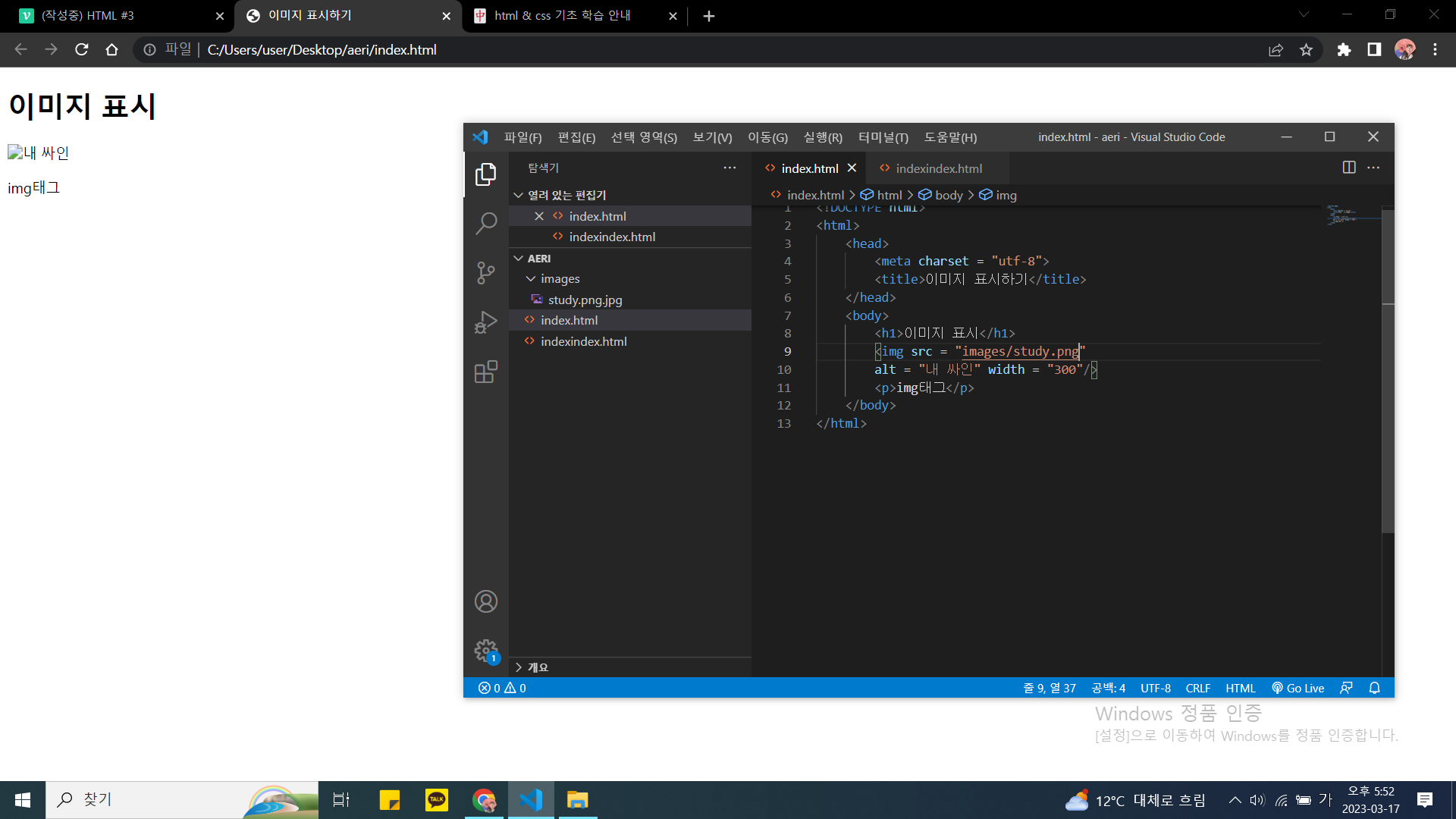 사진 파일명을 변경하고 속성을 넣어봤다.