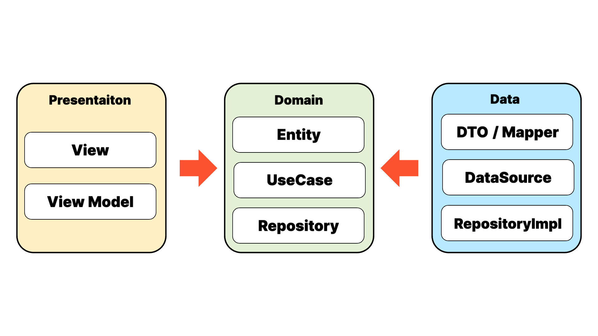 위 그림을 통해 Clean Architecture는 MVVM 패턴 대비 더욱 명확하게 관심사를 분리 했음을