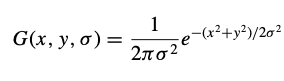 여기에서 I(x, y)는 인풋 이미지이고, G(x, y,σ)는 가우시안 필터이며, 이 둘을 컨벌루션하여 L(x, y,σ)라는 블러된 이미지를 얻을 수 있다. 그리고, 이렇게 블러된 이미지들을 여러 개 만든 뒤 각 이미지들 간의 차이를 도출하는 DoG(Difference of Gaussian)를 이용한다.(Lowe, 1999)
