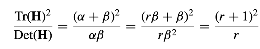 r은 두 개의 고윳값의 비율이고, trace와 determinant를 활용하여 계산하기에 효율적인 비율 r을 찾을 수 있다.