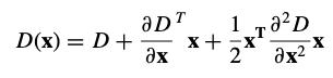 여기서 D와 그 도함수는 샘플 포인트에서 평가되고 x = (x, y, σ)^T는 이 포인트로부터의 오프셋이다. 극값의 위치 xˆ는 이 함수에 미분을 구하고 x를 0으로 설정한다.