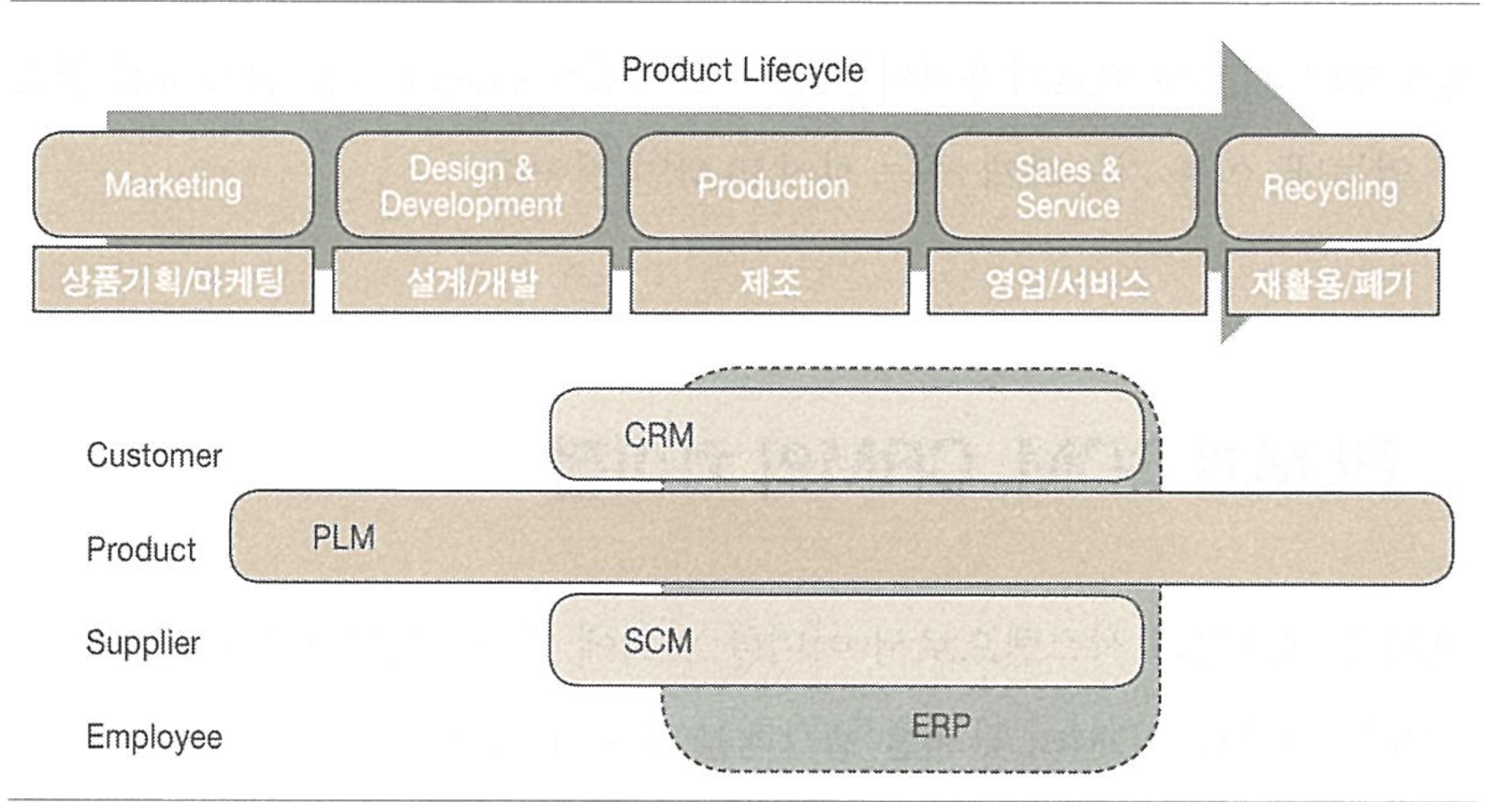 PLM 시스템은 엔터프라이즈 레벨에서 다른 주요 시스템들과 연동되어 작동한다.