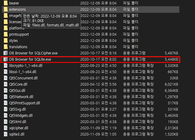 3. C:\Program Files\DB Browser for SQLite\ 기본 경로에 접근하여 위 파일을 실행합니다.