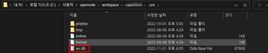 4. 실행하면 이런 페이지가 열리는데, 데이터베이스 열기를 클릭하여 프로젝트에 경로에 접근하여 SVN을 찾습니다.