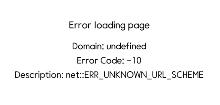 error loading page domain: undefined error code: -10 description: net::ERR_UNKNOWN_URL_SCHEME