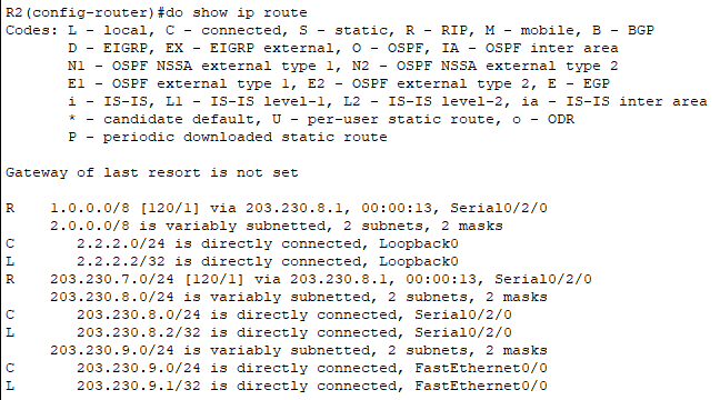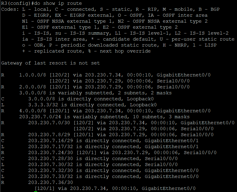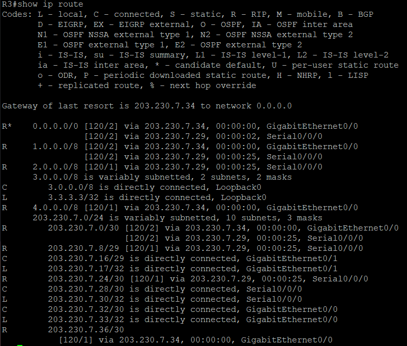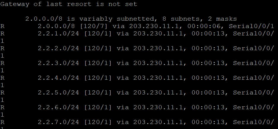 - (할당된 IP)/8 [120/1] ~~~, Serial 0/2/0