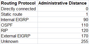 - Default Administrative Distance Value가 낮은 것을 우선으로 사용