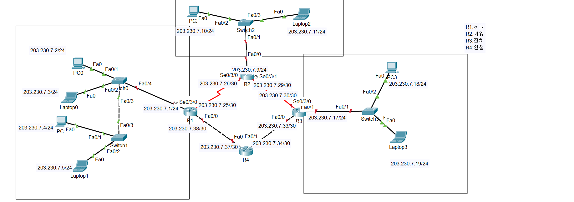- rip 설정 이후, 특정 IP로 가는 경로가 끊긴 경우