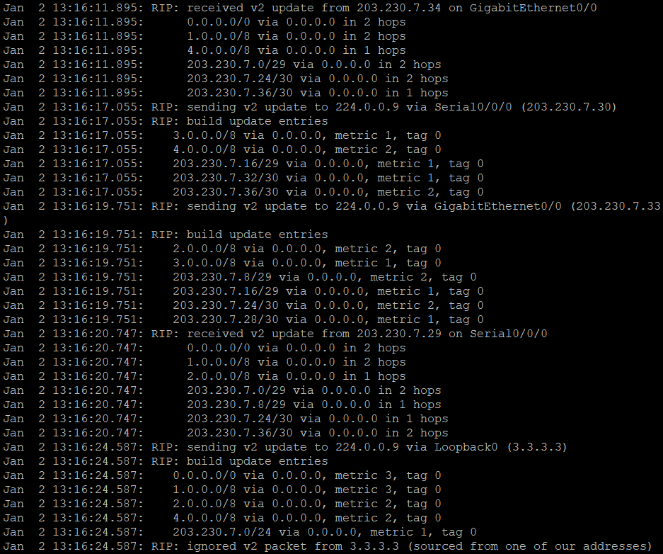 - 라우팅 정보 전달을 위해 브로드캐스트 주소가 아닌 멀티캐스트 주소 224.0.0.9 사용
