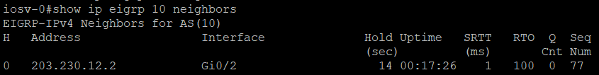- show ip protocols는 라우터에 사용된 EIGRP 프로토콜에 대한 상세 정보와 라우팅된 네트워크 항목, passive interface, 라우팅 정보 소스 등을 기록