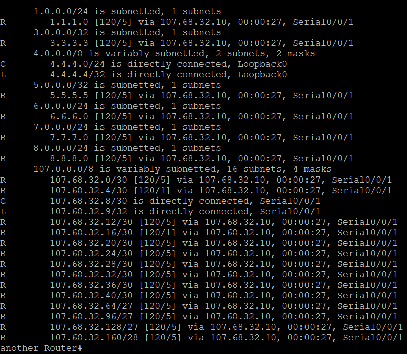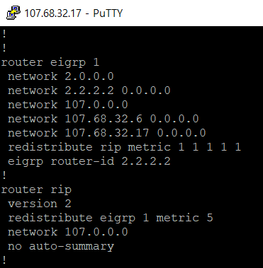 - another_router가 RIP으로 동작하기에 EIGRP와 RIP 재분배를 설정해 주었음