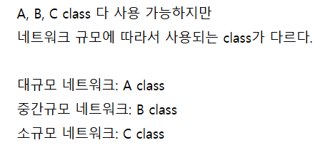 - IP주소의 범위 전체를 사용하지 않고, 특정 용도에 따라 분류된 클래스에 따라 특정 범위 내에서 IP주소 할당