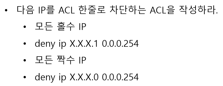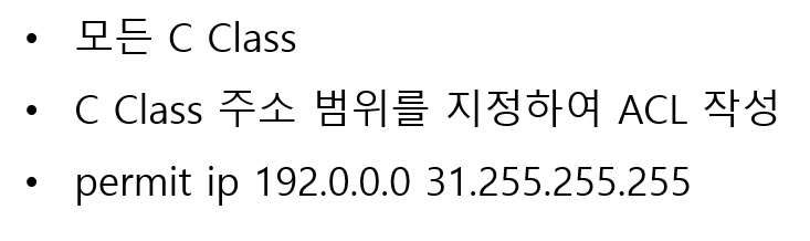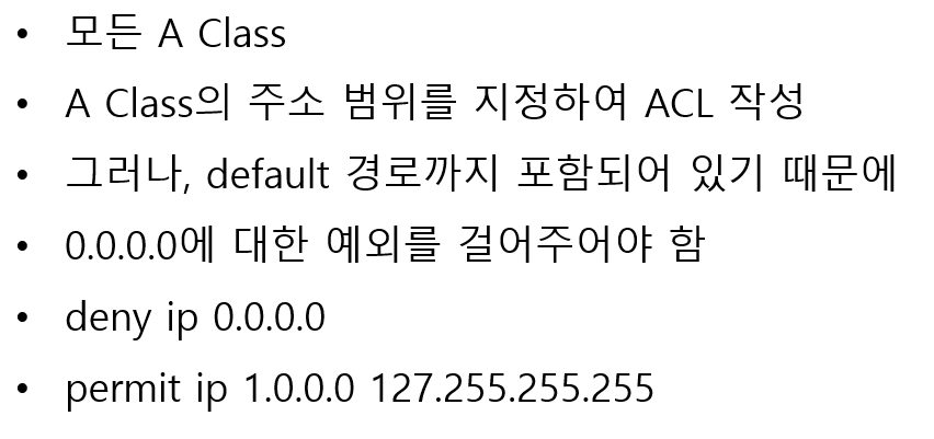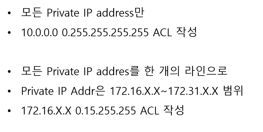 - Specific IP 주소에 대한 ACL 문장을 먼저 작성해야 함