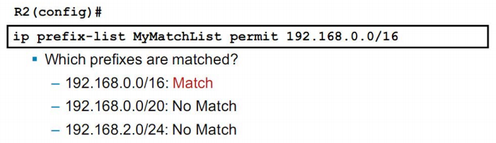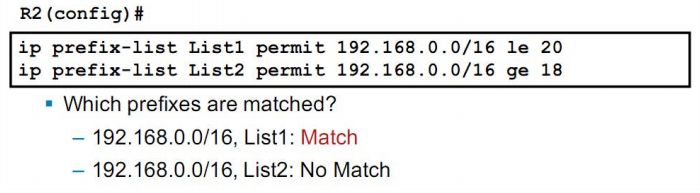 - ip prefix-list C2 permit 192.0.0.0/3 ge 28 le 28
