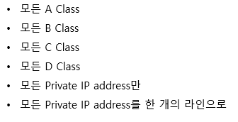 - 해당 범위들로 Prefix Match를 실행하겠다는 의미