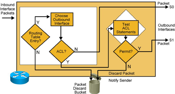 - 만약 특정 문장에서 Permit이 된다면 Packet은 목적지 Interface(or Interfaces)로 전송됨
