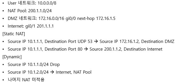 - 10.1.1.1이 UDP 53 포트를 사용한다면 source를 172.16.1.2로 변환하고 DMZ로 전송