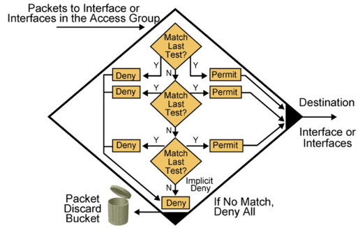 - 만약 해당 문장에서 Deny가 된다면 Packet은 Drop됨(Go to Packet Discard Bucket)