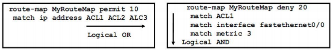 Route map의 permit/deny문은 후보의 재분배 여부를 결정