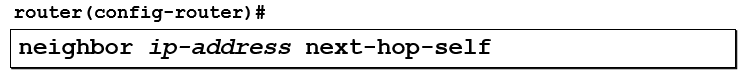 - BGP next-hop processing을 우회하고, 지정된 neighbor로 전송되는 업데이트에서 Local IP 주소를 BGP next-hop으로 알림