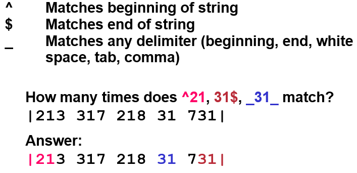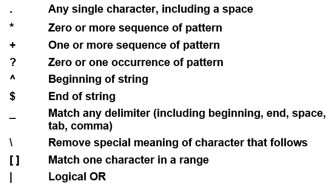 - 문자열의 시작, 끝, 공백, tab, comma 등