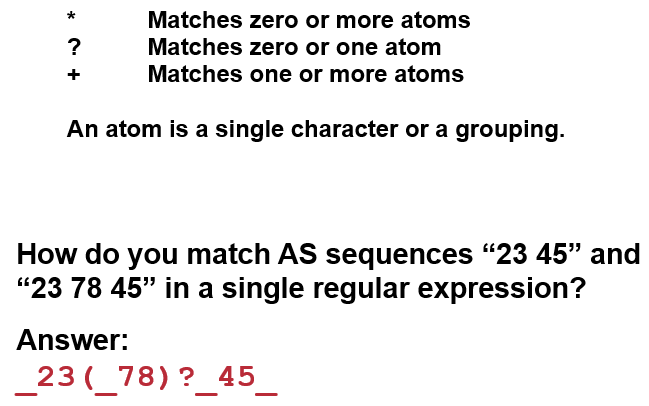 - ? 는 나오지 않거나 단 한 번만 나오는 atom match