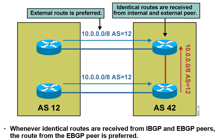 - 경로를 선택할 때, EBGP 경로를 조금 더 우선시함