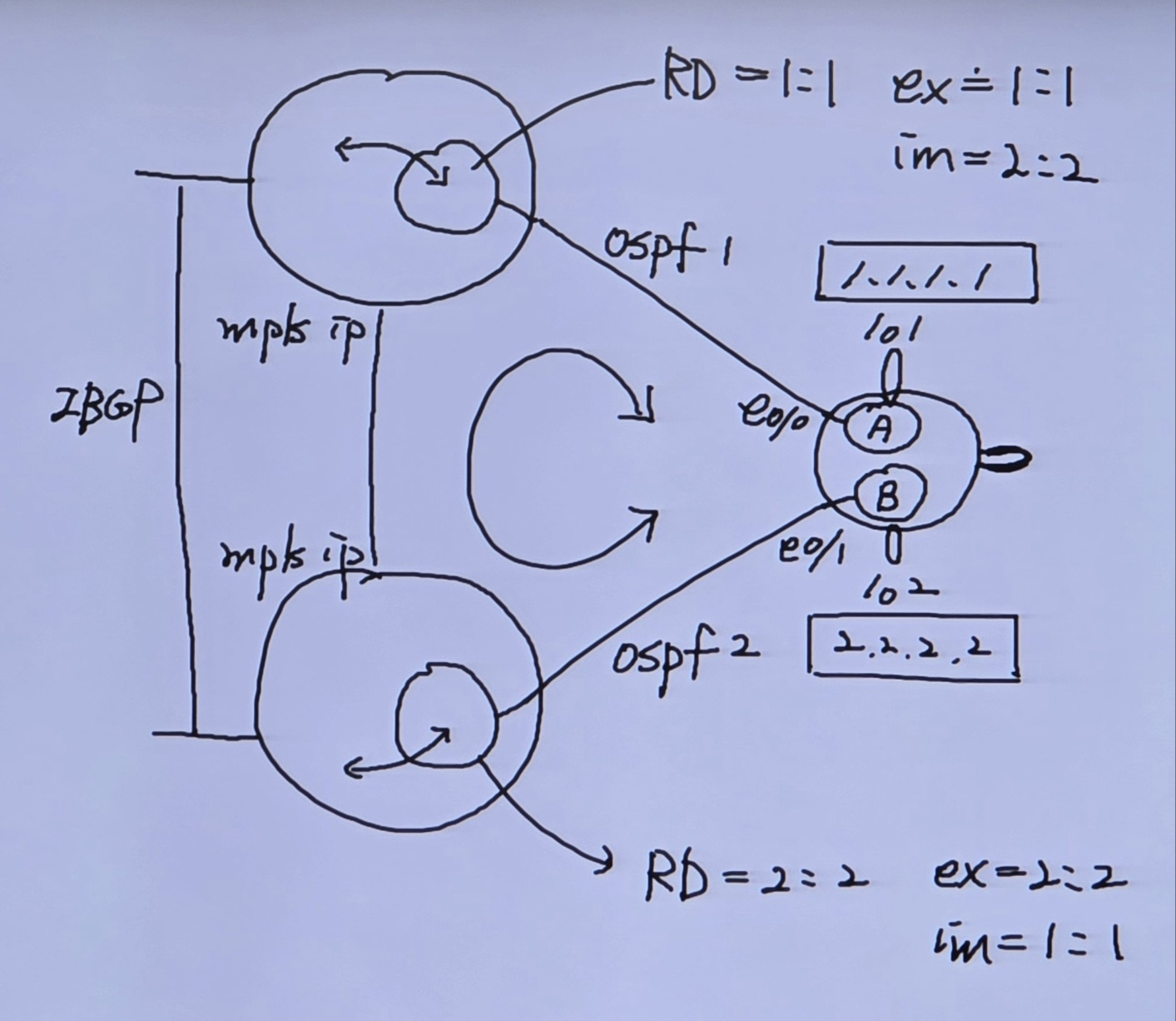 - 각 VRF마다 RD라는 인자를 만들어 중복 경로 구분