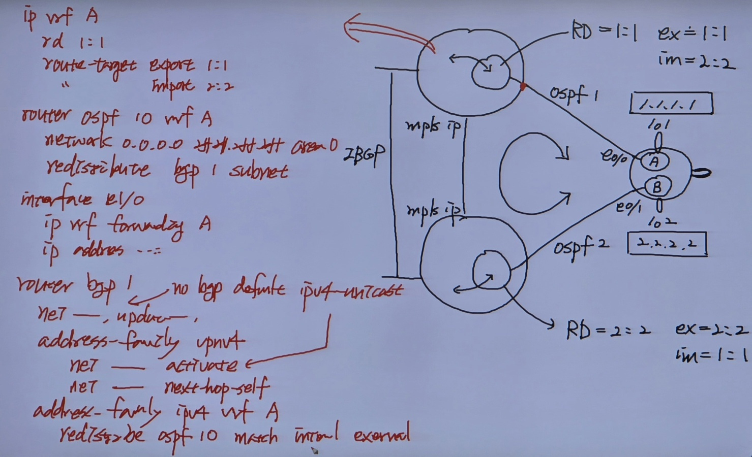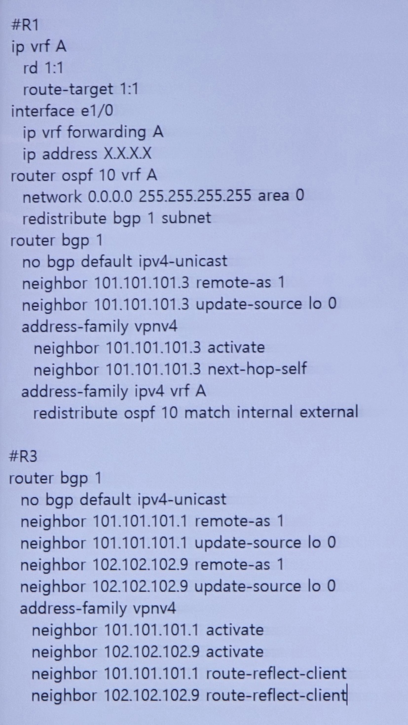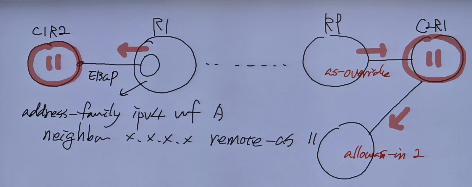 - address family 설정에서 해당 VRF는 특정 as로 동작하겠다는 설정만 있으면 됨