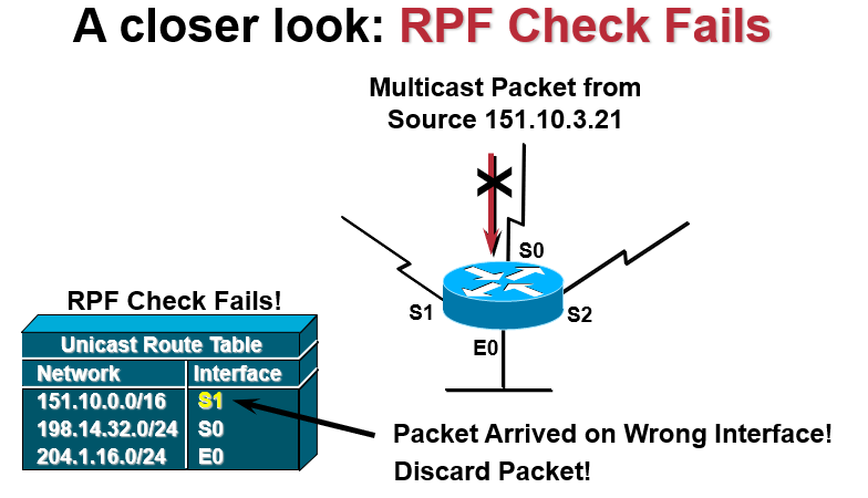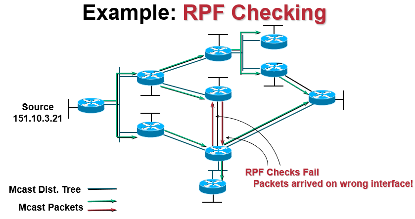 - RPF check가 fail이면, 데이터그램은 아무 공지 없이 사라짐
