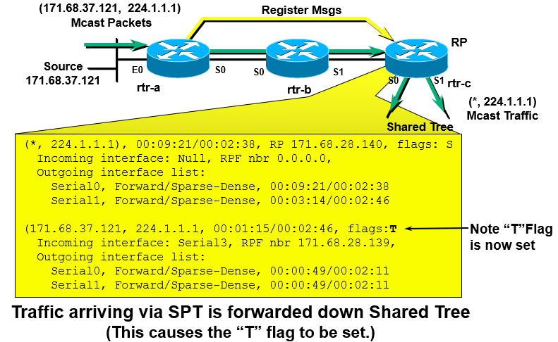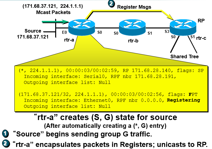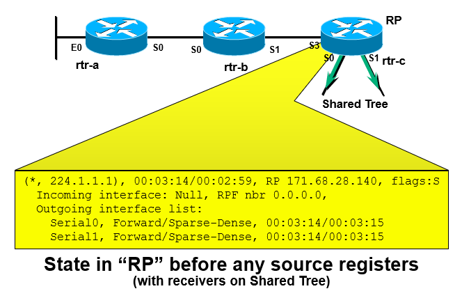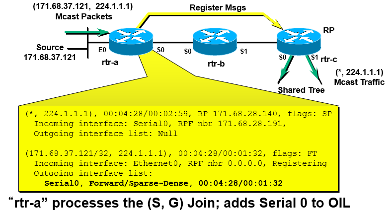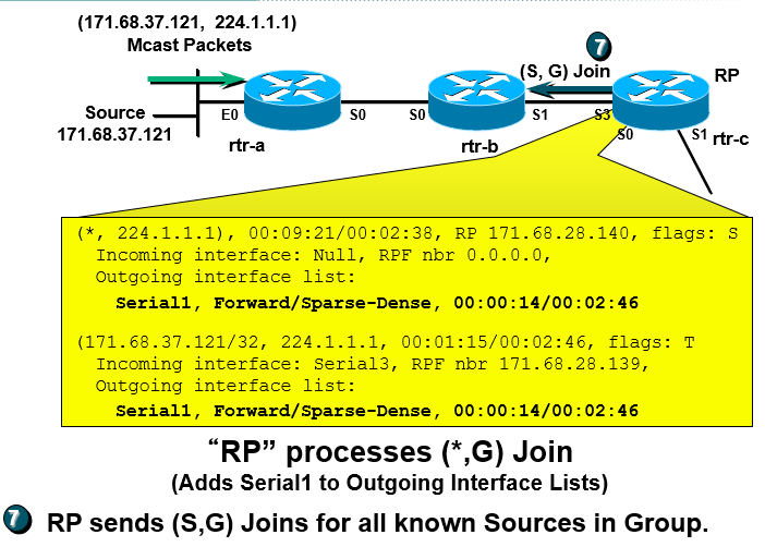 - (*,G)에 추가된 인터페이스는 모든 (S,G)에 추가됨
