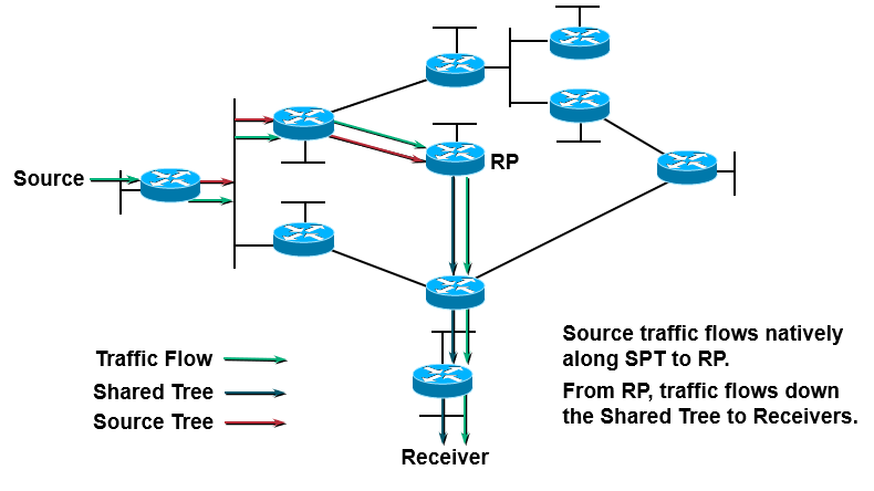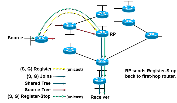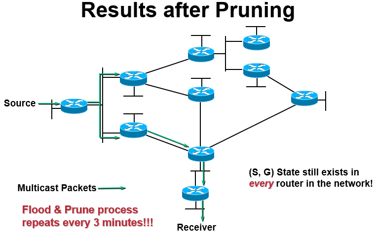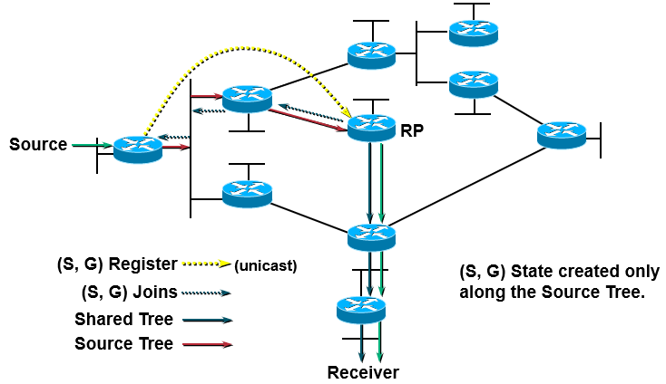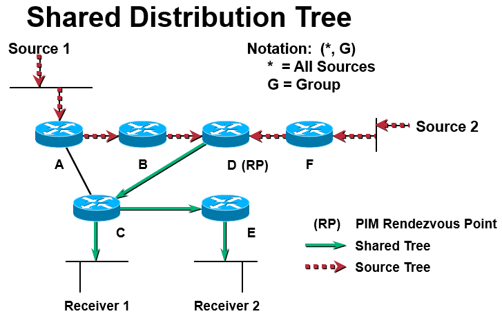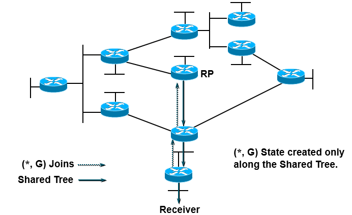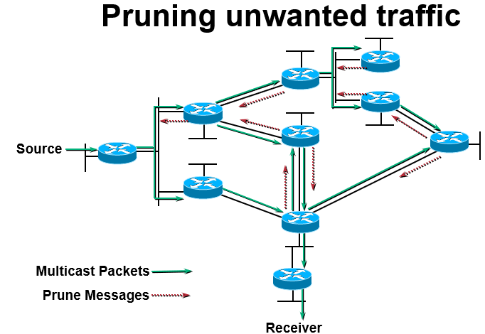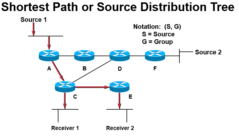 - Source에서 Receiver Group으로 최단 거리로 전송
