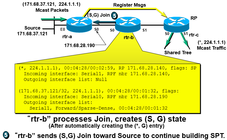 - 수신한 G packet 다음 S에 대해 (S,G) SPT에 가입