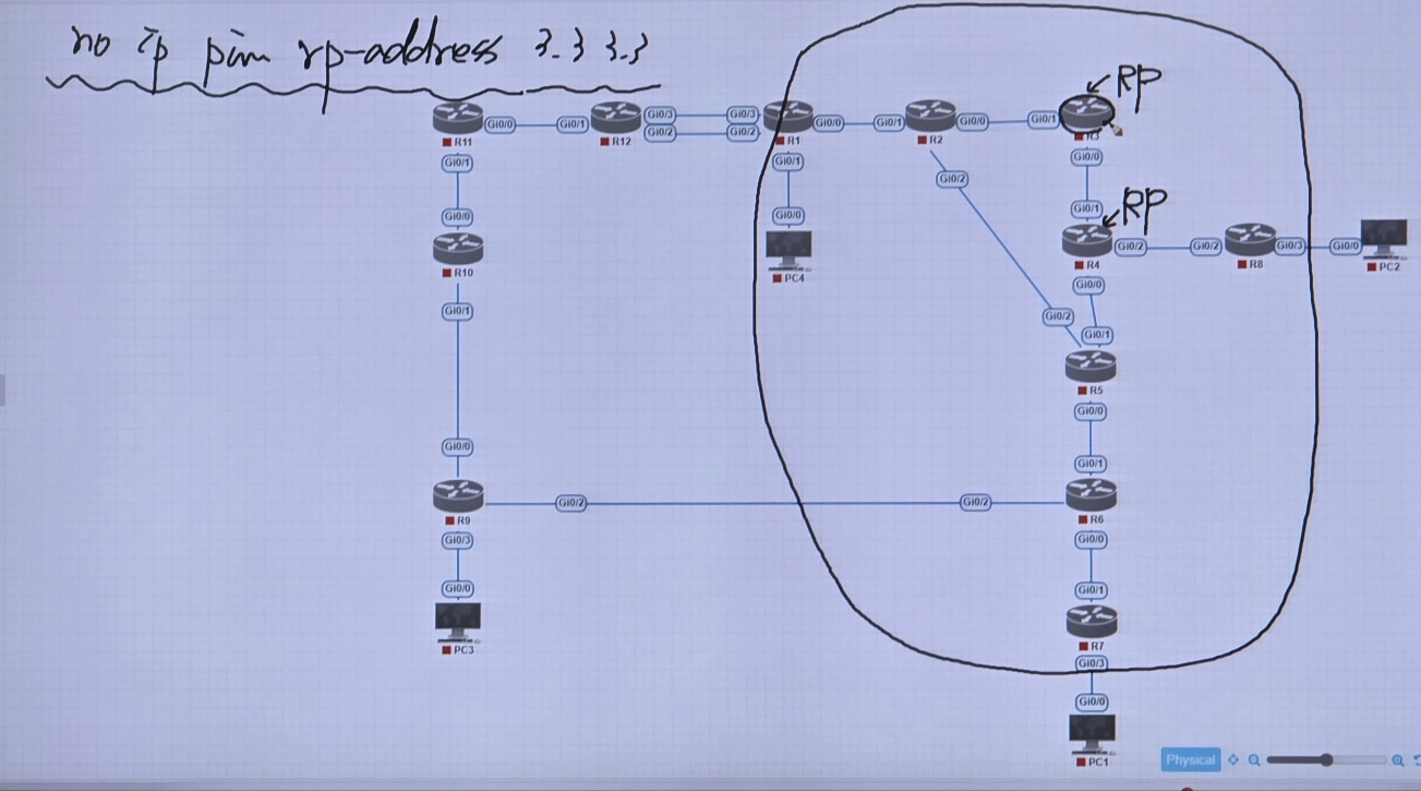 - LAB_1에서 설정한 ip pim rp-address 삭제