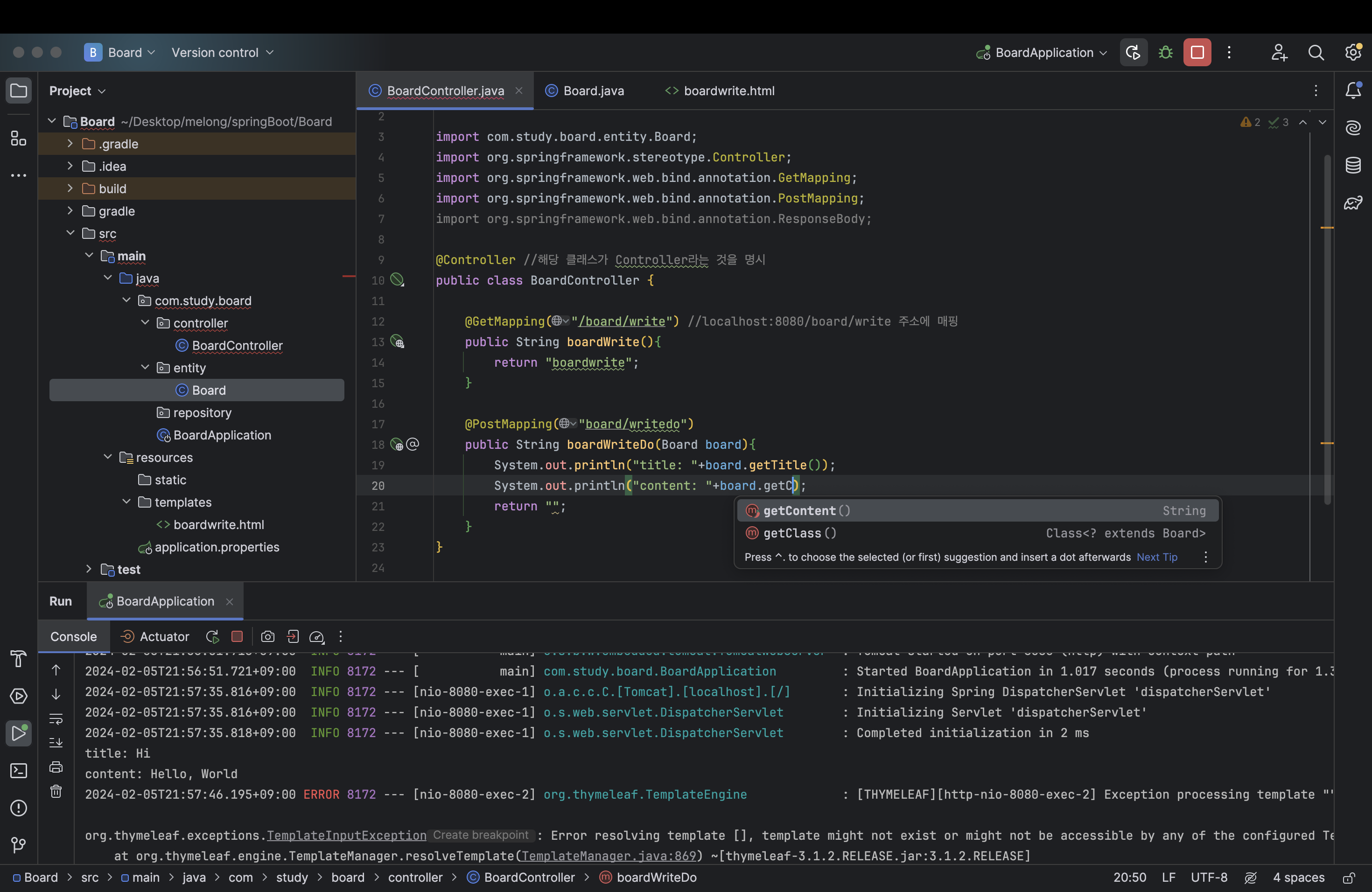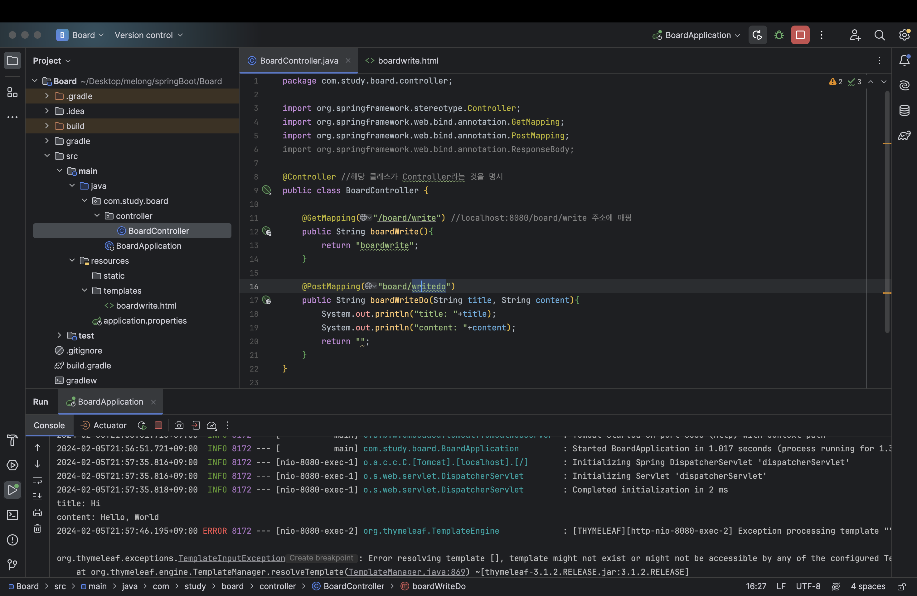 BoardController 로 돌아와 다음과 같이 수정해준다.