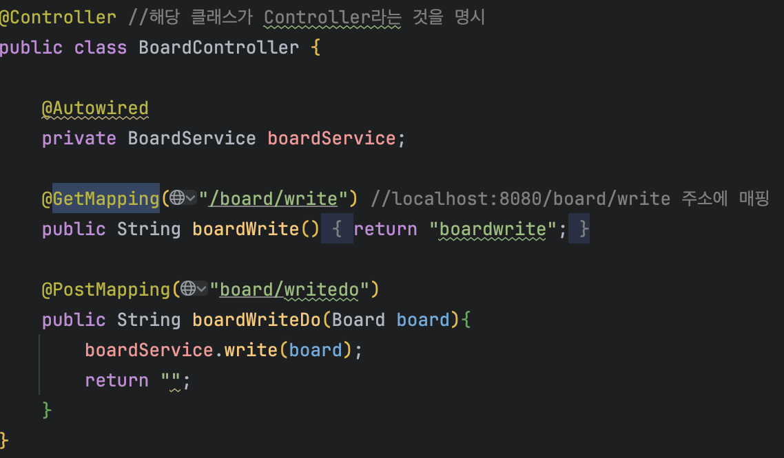 ☝️ 이렇게 작성을 마치고 다시 컨트롤러로 돌아와서 boardWriteDo 매소드의 매개변수를 Board board로 변경해준다.