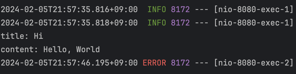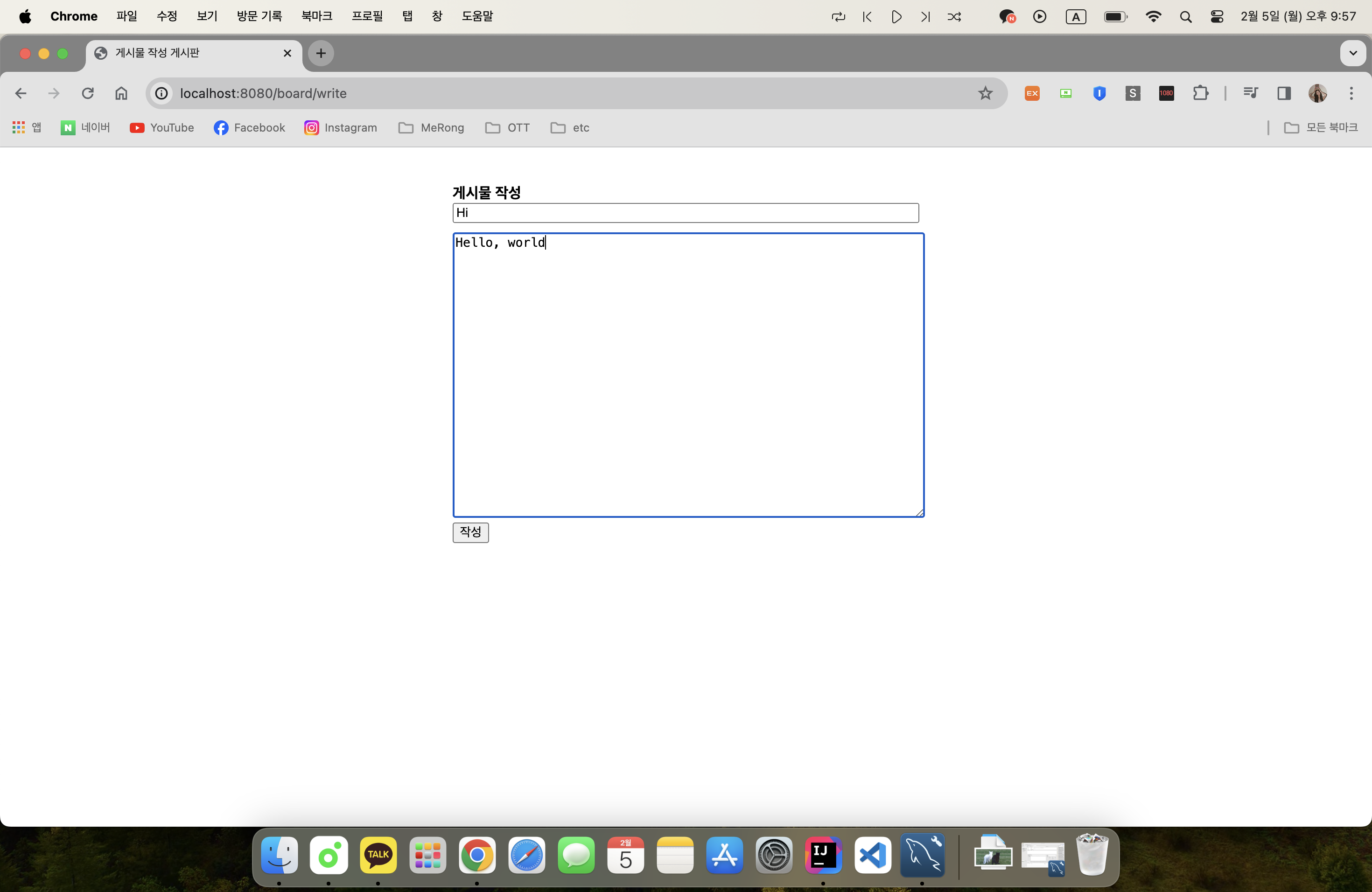 위처럼 코드를 작성해주고 재실행한 뒤, 아래와 같이 내용을 입력하고 작성 버튼을 눌러주면