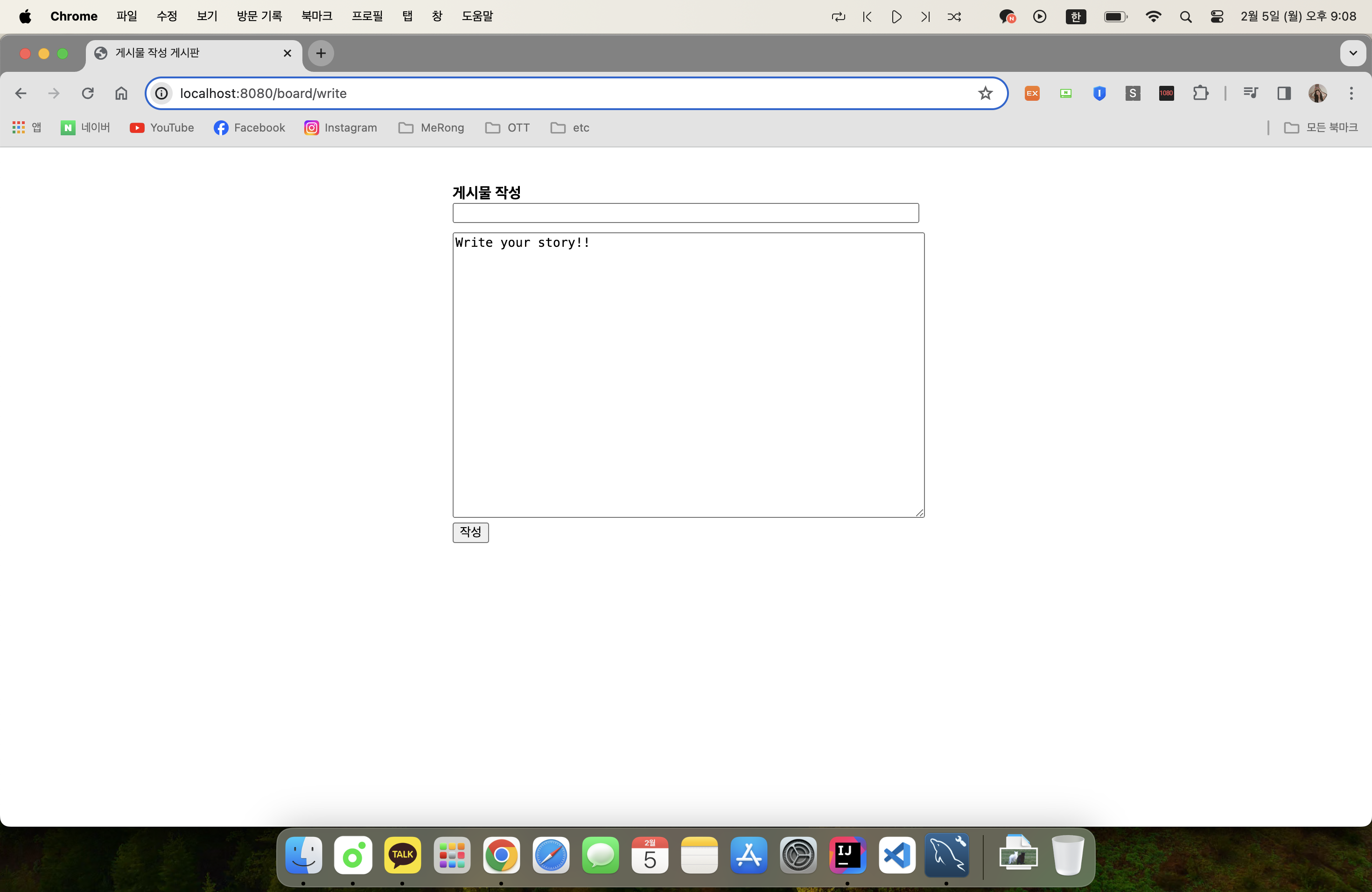 이제 localhost:8080/board/write 에 접속해보자.