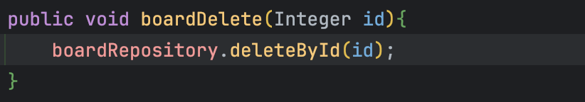 그리고 위와 같이 BoardService 에 삭제 메소드인 boardDelete 를 추가하자.