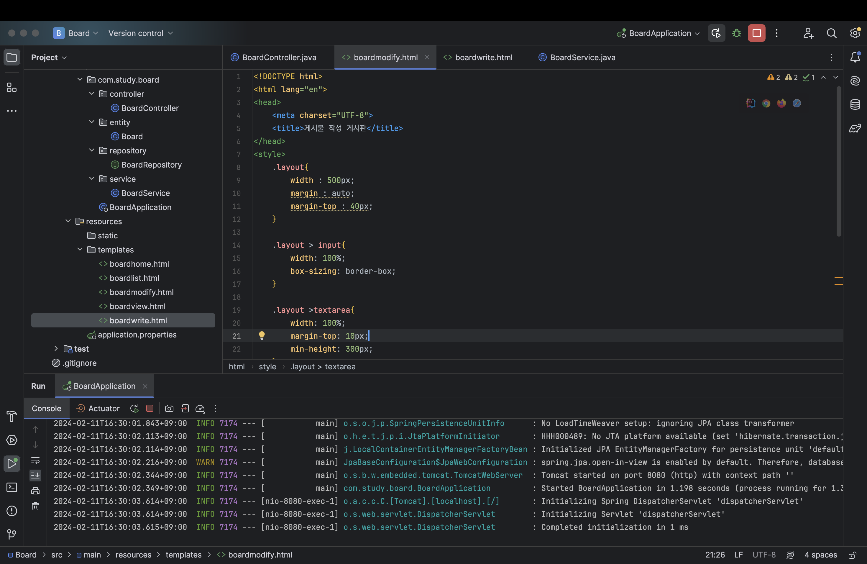 그리고 boardmodify html 파일을 하나 생성해주고 일단 boardwrite 파일을 복사해 일단 붙여넣어준다.
