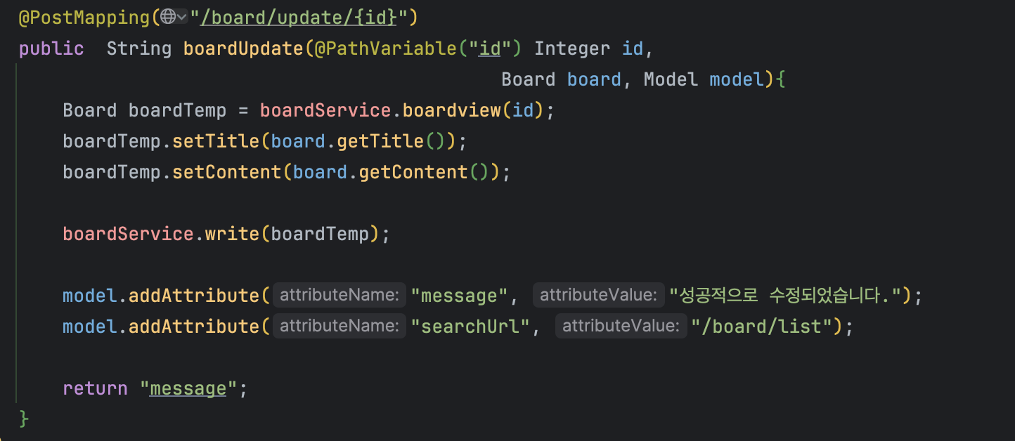 Controller 에서 boardUpdate 부분을 다음과 같이 수정하면 끝이다.