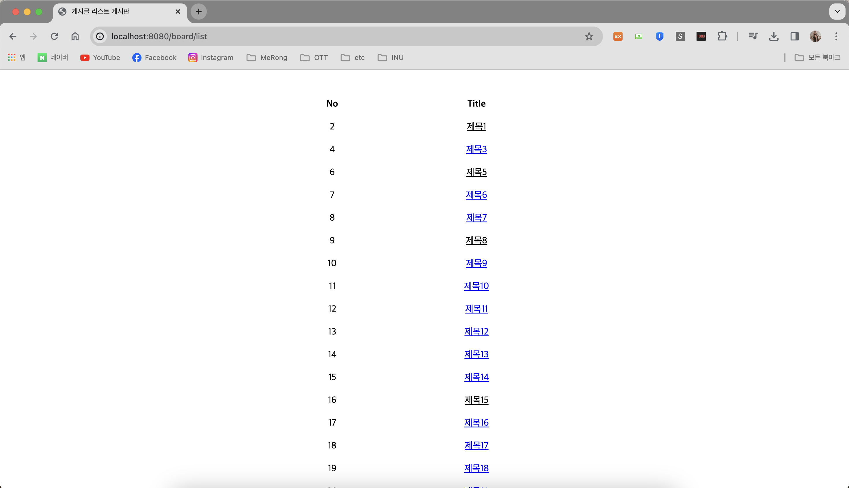 이렇게 테스트용 게시물을 몇 개 생성하고 중간에 있는 게시물을 삭제해 보면,
