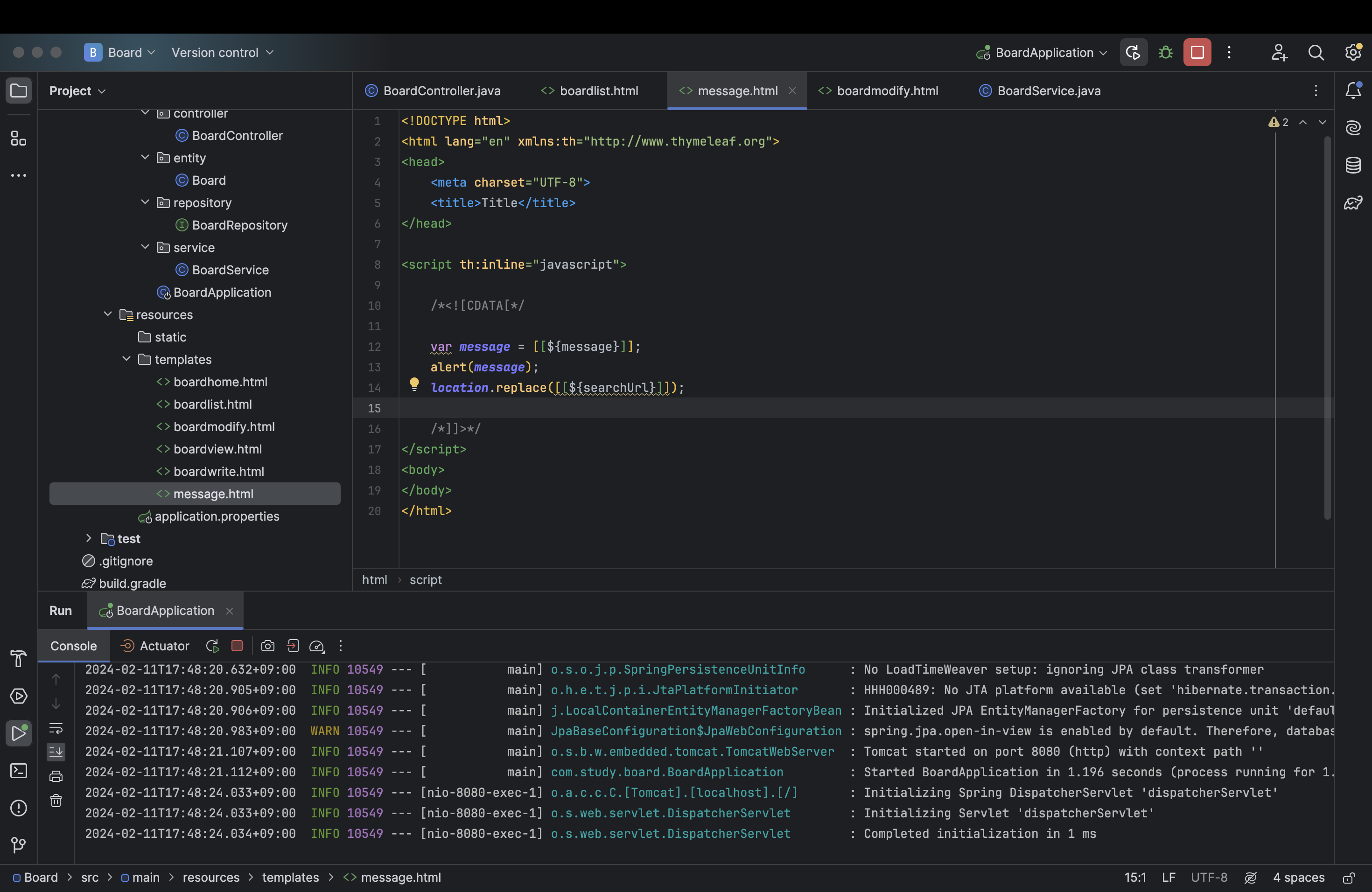 먼저 templates 하위에 message html 파일을 만들어주고 다음과 같이 작성하자.