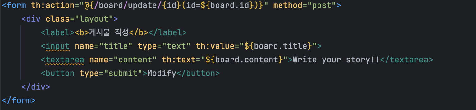 boardmodfiy html 파일의 form 부분을 다음과 같이 수정해주자.