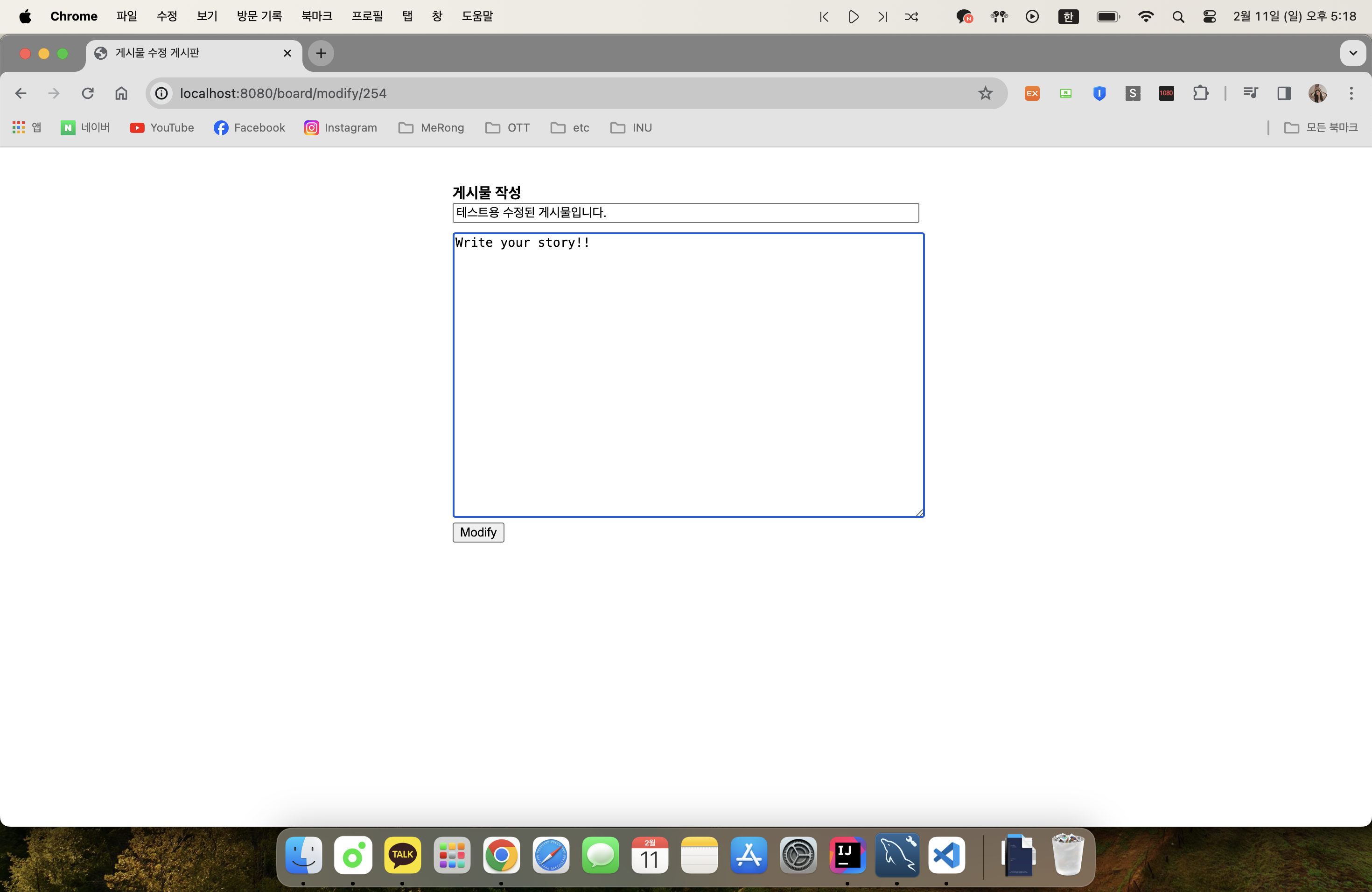 다시 게시물을 수정해보자. 정상적으로 수정될 것이다.