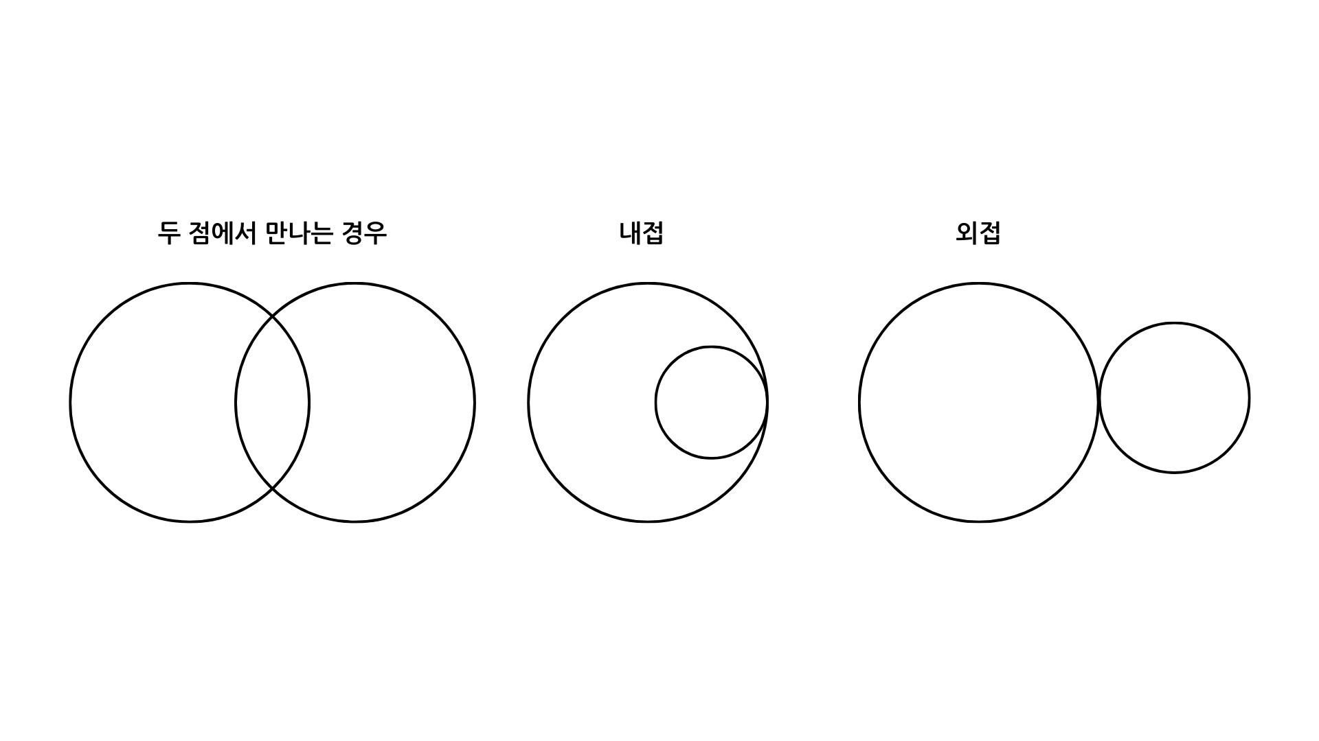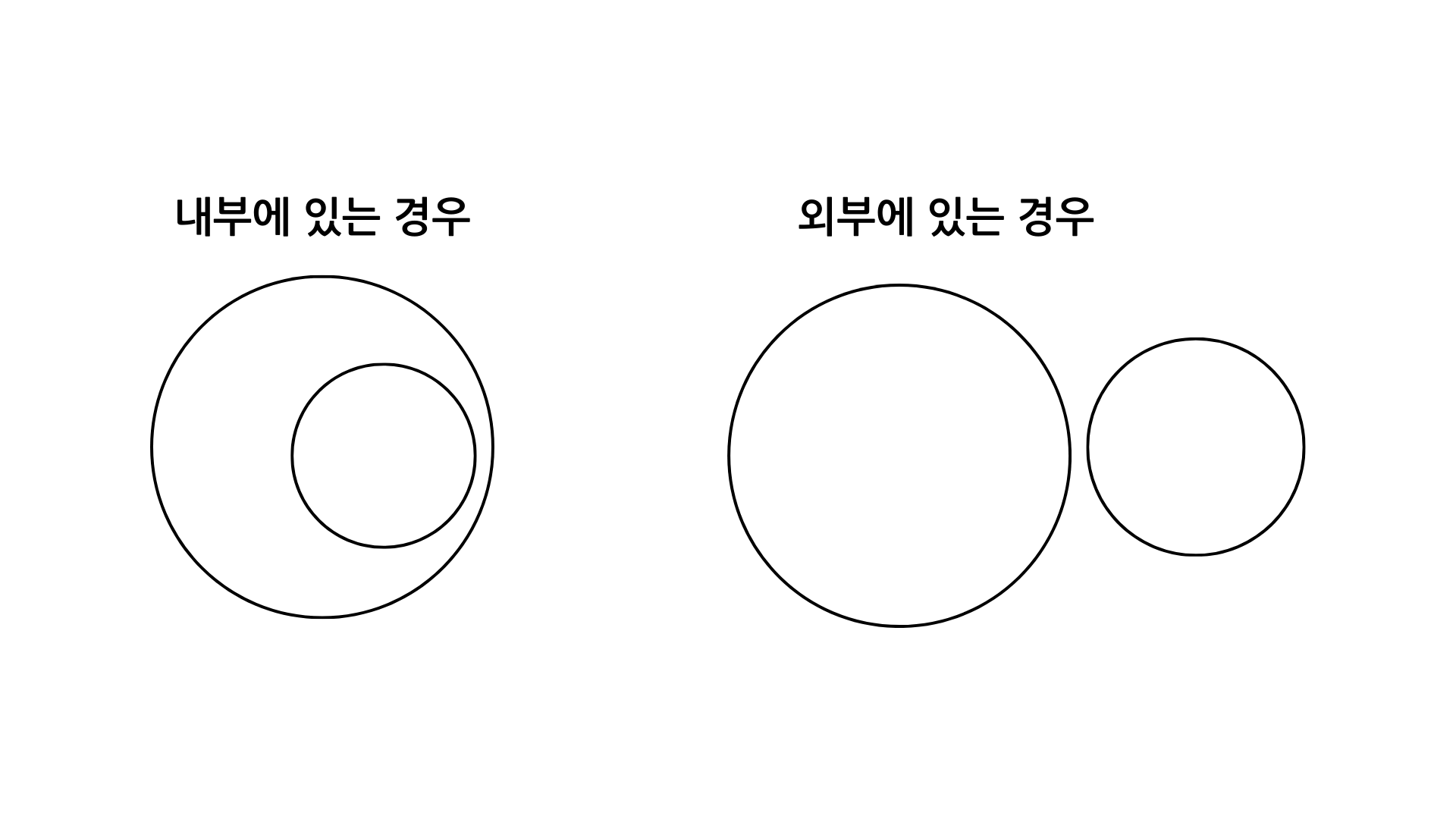 문제에서 원들은 내접, 외접 등 교점이 존재하지 않기 때문에 임의의 두 개의 원이 주어졌을 때 한 원이 다른 원의 내부에 있거나, 외부에 있거나 둘 중 하나인 경우만 존재한다는 뜻이다.