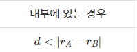 위 코드에서는 원이 내부에 있는 경우인지 판별하기 위해 if (d < r1) 로 작성했지만 공식에 나와있는 그대로 if(Math.abs(r1 - r2)) 이렇게 작성해도 된다.