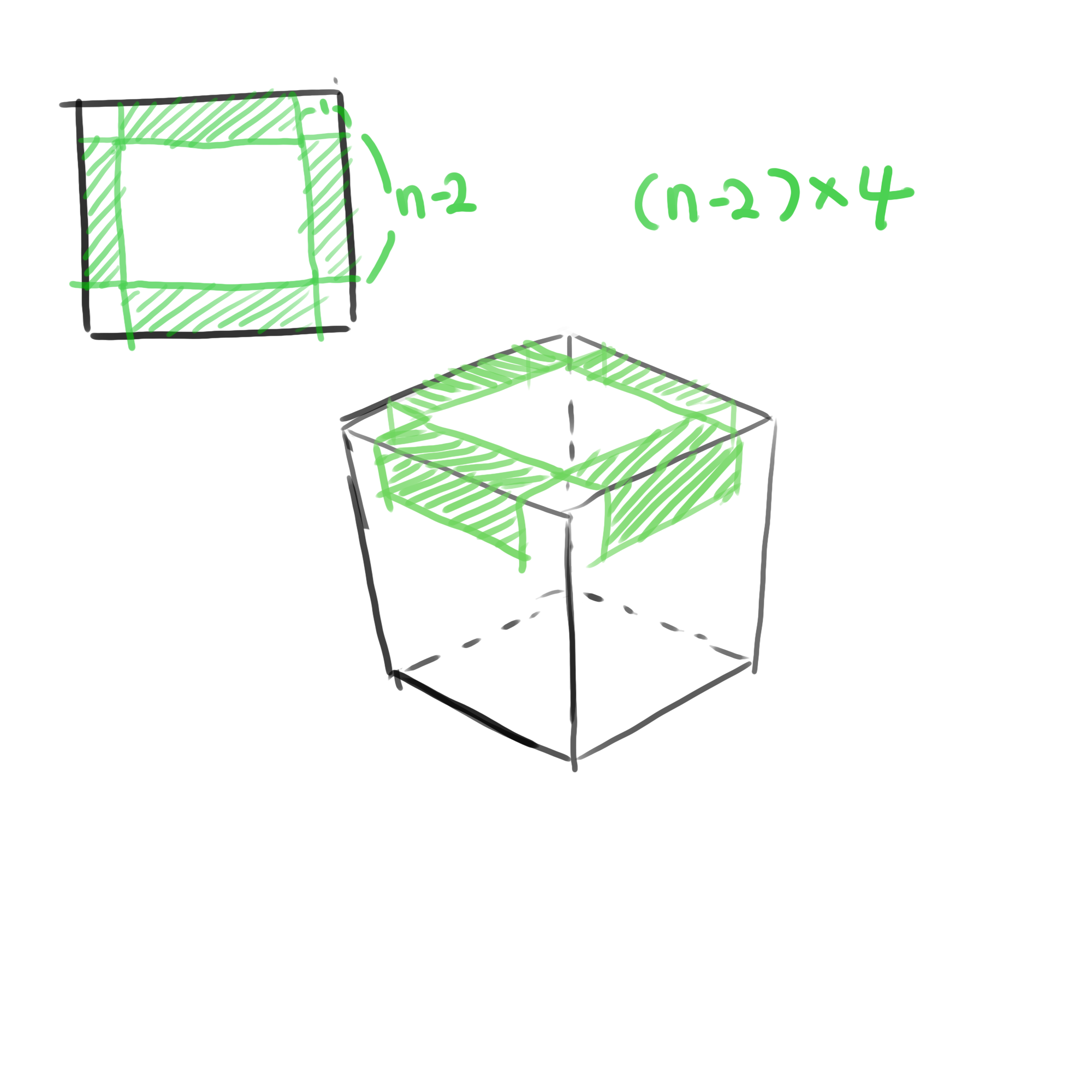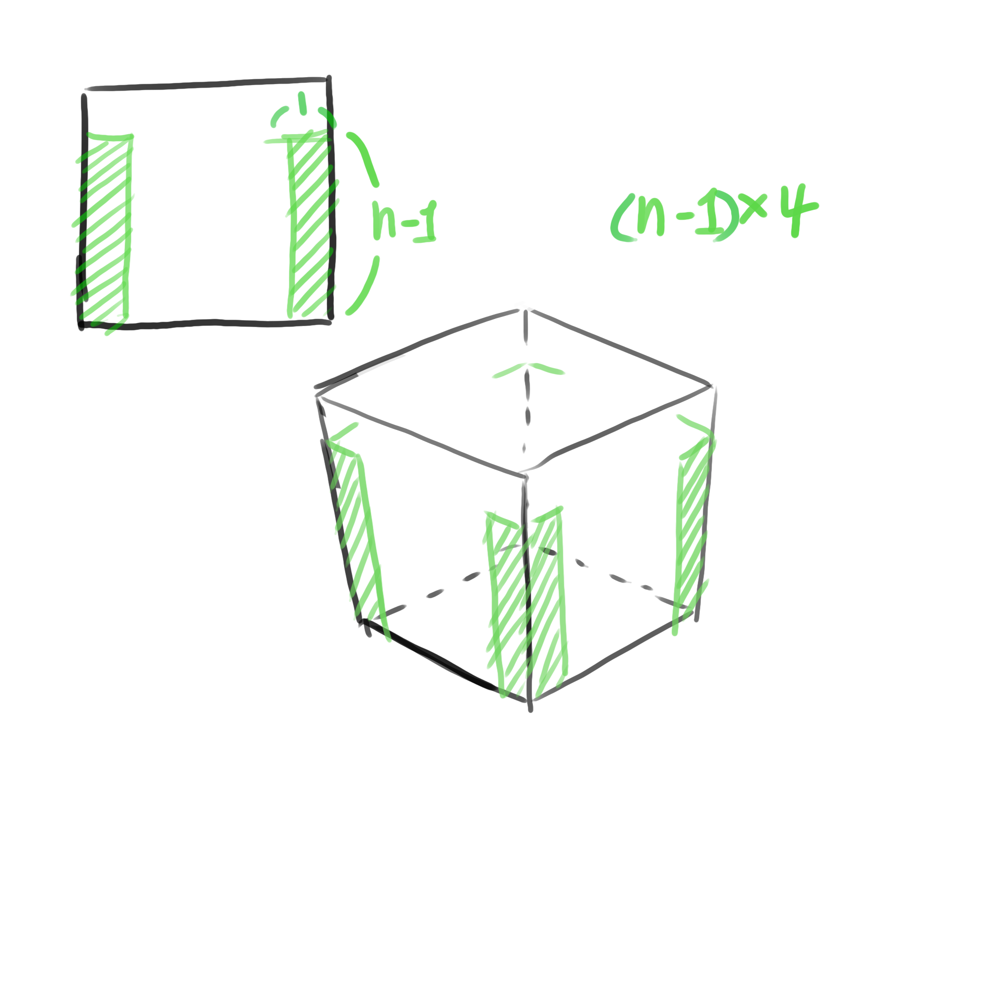 이렇게 구성하면 정육 면체의 모든 부분이 채워진다.