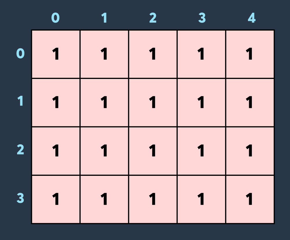 3x4 행렬의 경우, 4x5 행렬을 만들어 0으로 초기화 한다.
